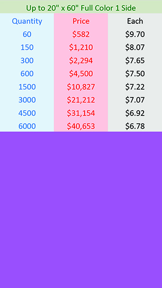 With our 60x120" 4mm coro sheets you may squeeze and inch off your signs here and there and save big